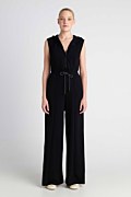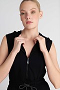 Αμάνικη, μακριά ολόσωμη φόρμα με απαλή, ελαφριά υφή. Διαθέτει κουκούλα, κλείσιμο με φερμουάρ στο μπροστινό μέρος, φαρδύ λάστιχο στη μέση με ρυθμιζόμενο κορδόνι για μεσάτο στυλ και φαρδιά μπατζάκια. Κανονική εφαρμογή. Κομψή και μοντέρνα φόρμα, ιδανική για τις καθημερινές σου εμφανίσεις. Το μοντέλο φοράει μέγεθος S: Ύψος: 1,78 εκ., Στήθος: 88 εκ., Μέση: 63 εκ., Περιφέρεια: 91 εκ.
