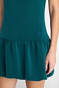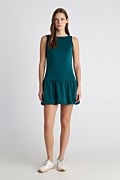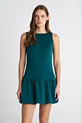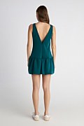 Μονόχρωμο μίνι φόρεμα σε στενή γραμμή με απαλή, ελαφριά υφή. Διαθέτει στρογγυλή λαιμόκοψη και ανοιχτή πλάτη για κομψή και θηλυκή εμφάνιση. Κάτω μέρος με πιέτες και φουσκωτό τελείωμα σε στυλ balloon, προσθέτοντας όγκο και κίνηση στο look. Το μοντέλο φοράει μέγεθος S: Ύψος: 1,77 εκ., Στήθος: 83 εκ., Μέση: 62 εκ., Περιφέρεια: 89 εκ.
