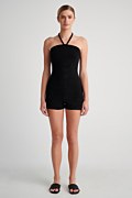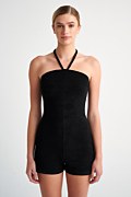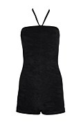 Μονόχρωμη στράπλες ολόσωμη κοντή πετσετέ φόρμα. Διαθέτει κορδόνι που δένει στο λαιμό για σταθερή εφαρμογή. Στενή γραμμή. Το μοντέλο φοράει μέγεθος S: Ύψος: 1,81 εκ., Στήθος: 88 εκ., Μέση: 62 εκ., Περιφέρεια: 91 εκ.