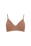 Τριγωνικό σουτιέν με λεοπάρ τύπωμα σε όλο το ύφασμα, σχεδιασμένο με ελάχιστες ραφές για λεία και άνετη αίσθηση στο δέρμα. Διαθέτει ενίσχυση στο στήθος με ενσωματωμένα pads, ρυθμιζόμενες τιράντες και κούμπωμα στην πλάτη.