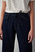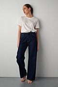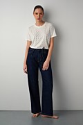 Πεντάτσεπo τζιν σε ίσια γραμμή με κανονική εφαρμογή από τη μέση μέχρι τους γοφούς, και πιο χαλαρό, ίσιο κόψιμο από τους μηρούς μέχρι τα μπατζάκια. Διαθέτει λάστιχο στη μέση με ρυθμιζόμενο κορδόνι από το ίδιο ύφασμα, κλείσιμο με φερμουάρ και εσωτερικό μεταλλικό κουμπί κόπιτσα. Ιδανικό για μια άνετη, casual εμφάνιση. Το μοντέλο φοράει μέγεθος 36: Ύψος: 1,75 εκ., Στήθος: 81 εκ., Μέση: 67 εκ., Περιφέρεια: 89 εκ.